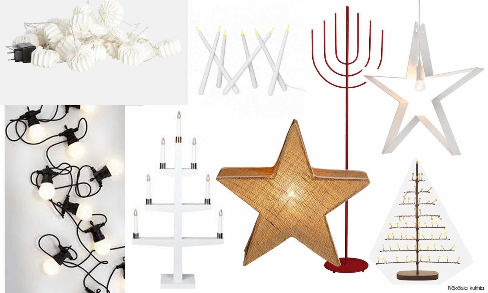 Meillä olisi tarvetta jouluvaloille, ja tällaisia moderneja ja selkeitä malleja bongailin netistä.